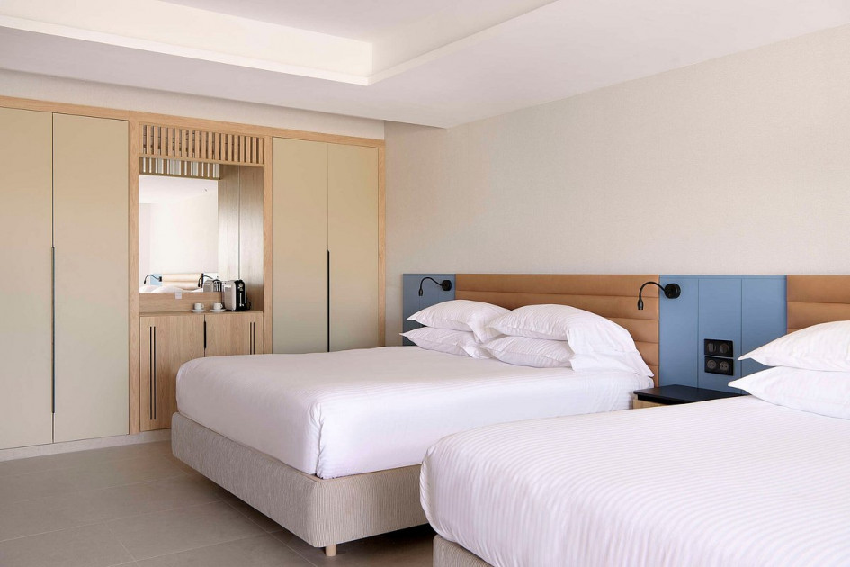 Хотелът разполага с общо 300 стаи, разположение в няколко сгради: Double Room (24 кв.м), Standard Room Garden View (24 кв,м), Sea Side View Room (24 кв.м), Pool View Room (24 кв.м), Family Room (30 кв.м), като допълнителни легла се предоставят два разтегателни дивана, Family Room Garden View (30 кв.м), като допълнителни легла се предоставят два разтегателни дивана, Premium Sea View Balcony/Terrace (24 кв.м, разполагат с халати за баня, сет кафе/чай, фронтална гледка море), Interconnecting Room (48 кв.м, представляват две двойни стаи с междина врата).
