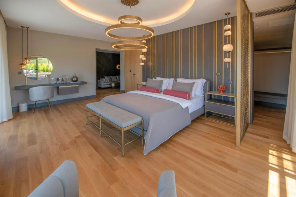 175 Superior Land View (изглед суша - 32 м2), 15 Superior Side Sea View (частичен изглед море - 32 м2), 15 Superior Room with Jacuzzi on Balcony (джакузи на балкона - 32 м2),  3 Handicapped Room ( стая за инвалиди - 32 м2), 50 Deluxe Room Garden View (изглед градина, 4 от които са подходящи за наставяване на домашни любимци  - 34 м2), 26 Deluxe Room Side Sea View (частичен изглед море - 34 м2), 14 Deluxe Room With Jacuzzi On Balcony (джакузи на балкона - 34 м2), 22 Deluxe Room Swim Up (с директен достъп до общ басейн - 34 м2 ) , 43 Family room (2 спални, 1 баня - 41 м2), 6 One-Bedroom Residence (1 спалня, хол, 1 баня - 54 м2), 3 Two-Bedroom Residence (2 спални, хол, 1 баня - 72 м2).