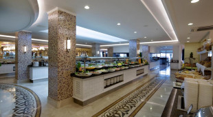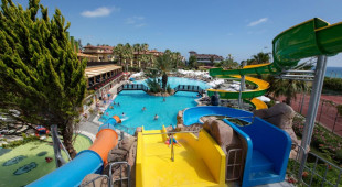 Основен ресторант, 2 а - ла - карт ресторанта, лоби бар, бар на плажа, диско бар, търговски център, доктор, тв салон, закрит басейн, 2 открити басейна, детски басейн, 4 водни пързалки, интернет кафе. За децата: детски басейн, детска площадка, мини-клуб (4-12 год.), тийн клуб (7-13г.), детегледачка (платено). Безплатни услуги: турска баня, сауна, парна баня, джакузи, фитнес аеробика, аквааеробика, плажен волейбол, баскетбол, тенис на маса, дартс, мини-голф, боча, баскетбол, анимационна програма, дискотека, интернет в лоби. Платени услуги: масаж, билярд, игрални автомати, уиндсърфинг (с лиценз), интернет кафе, водни спортове, СПА - център.