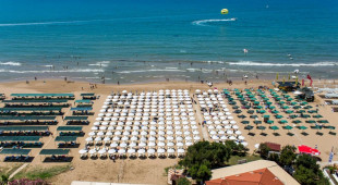 Плаж: Собствен пясъчен. Бар на плажа - безплатно. На басейна и на плажа: чадъри, шезлонги, матраци - безплатно. Плажни кърпи – на плажа и басейна - безплатно.