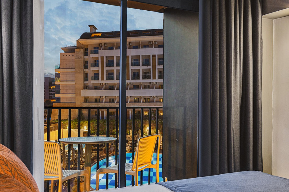 Намира се на 110 км от летище Анталия, на 115 км от центъра на Анталия, на 12 км от центъра на Алания, на 800 м от Конаклъ, на 150 м от брега на морето. Реновиран през 2024 г.