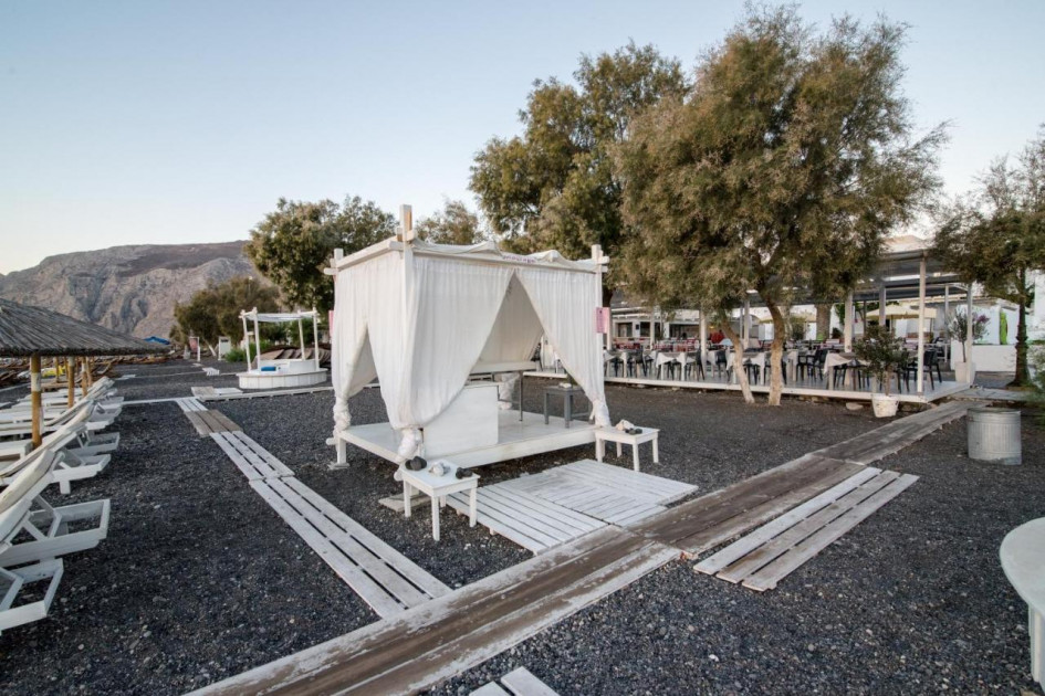 Хотелът се намира на на 4 км. от летище Санторини, на 8 км. от Фира и на 9 км от пристанище Атиниос, на 70 м. от центъра на Камари, на 40 м. от брега на морето, в близост до ресторанти, магазини и крайбрежни кафенета.