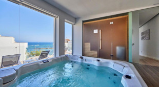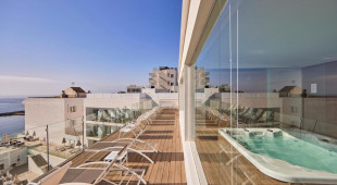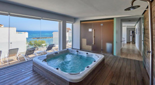 Хотелът разполага с открита тераса за слънчеви бани с басейн, джакузи и зона за хамак с чадъри. Терасата за слънчеви бани на първия етаж, с изглед към морето.