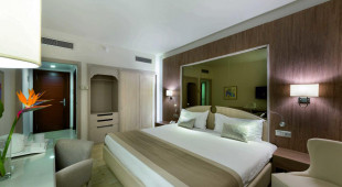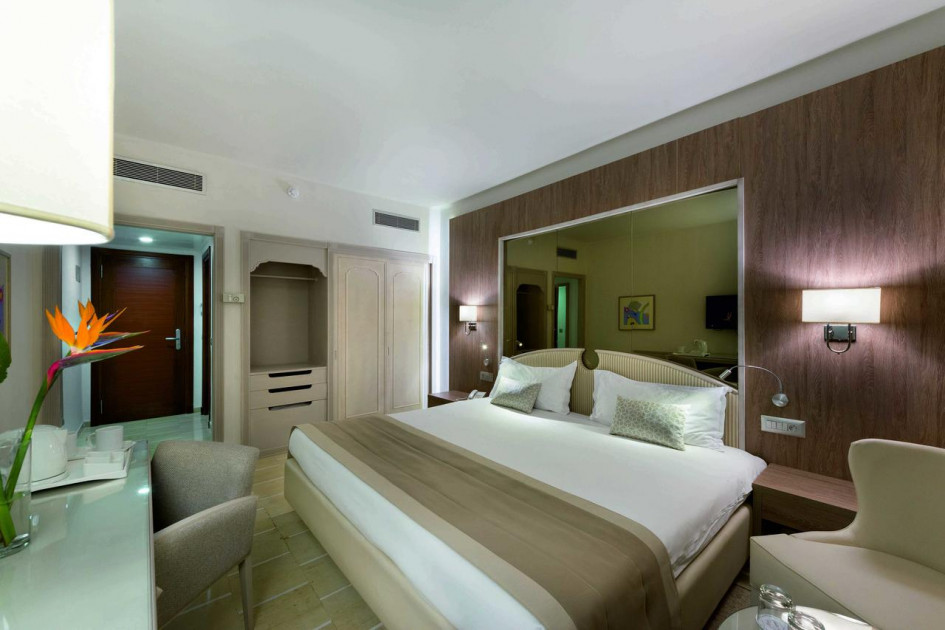 Хотелът разполага с 520 модерно обзаведени стаи, разположени в отделни сгради с асаньори: Superior Garden View (26 кв.м), Superior Room Sea View (26 кв.м), Family Room (32 кв.м), Junior Suite Prestige (36 кв.м, представлява две двойни стаи с междинна врата), Suite Senior Prestige (52 кв.м, представлява две стаи разделени от арка).