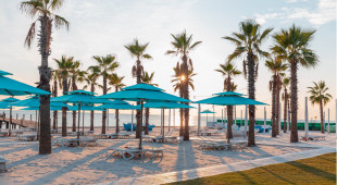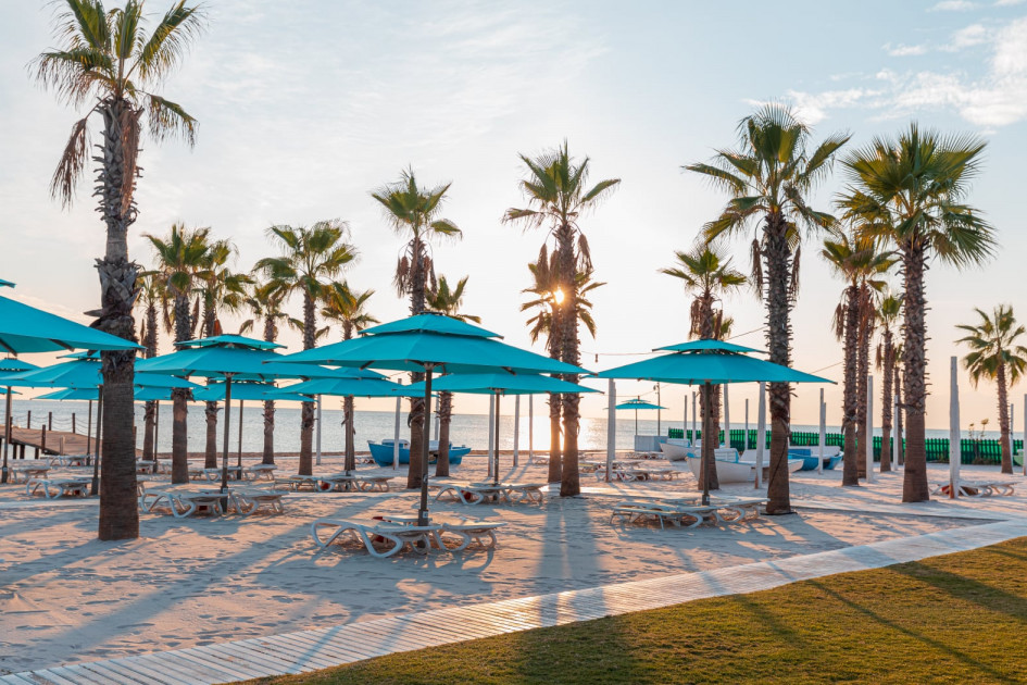 Собствен, пясъчно-чакълест. Чадъри и шезлонги на плажа и при басейна – безплатно. Плажни кърпи – безплатно.