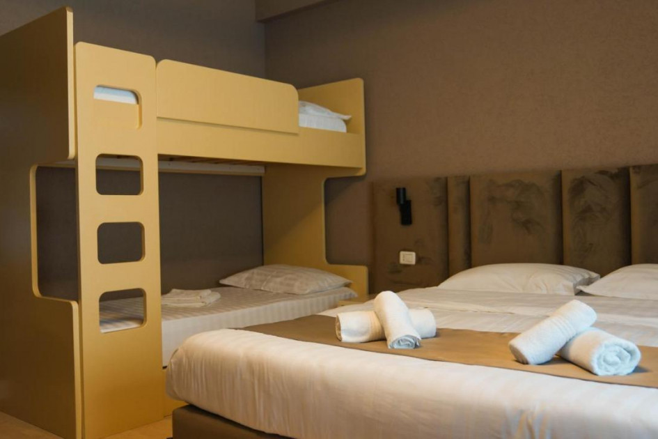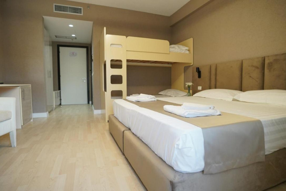 • При настаняване на 2 възрастни с 1 или 2 деца (DBL + 1 chd; DBL + 2 chd), третото и четвъртото легло винаги са допълнителни, тип разтегателни.