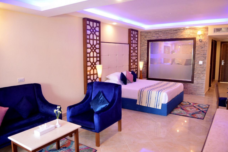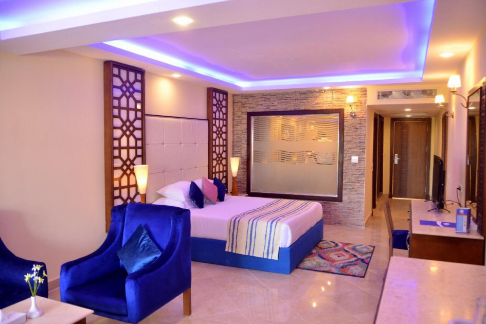 Хотелът разполага с общо 470 стаи, от които 306 Standard Hotel rooms (37 м2), 54 Club Standard rooms (49 м2),  8 Standard Family room (1 спалня с едно двойно и две единични легла, 1 баня - 65 м2), 54 Club Family room (2 спални, 1 баня - 65 м2) 17 Blue rooms (51 м2), 1 Blue Family room, 3 Blue Suites (1 спалня, хол, 1 баня - 70 м2), 16 Golden rooms (65 м2), 8 Swim up Rooms (65 м2), 3 Golden Family rooms (2 спални, 1 баня - 70 м2).