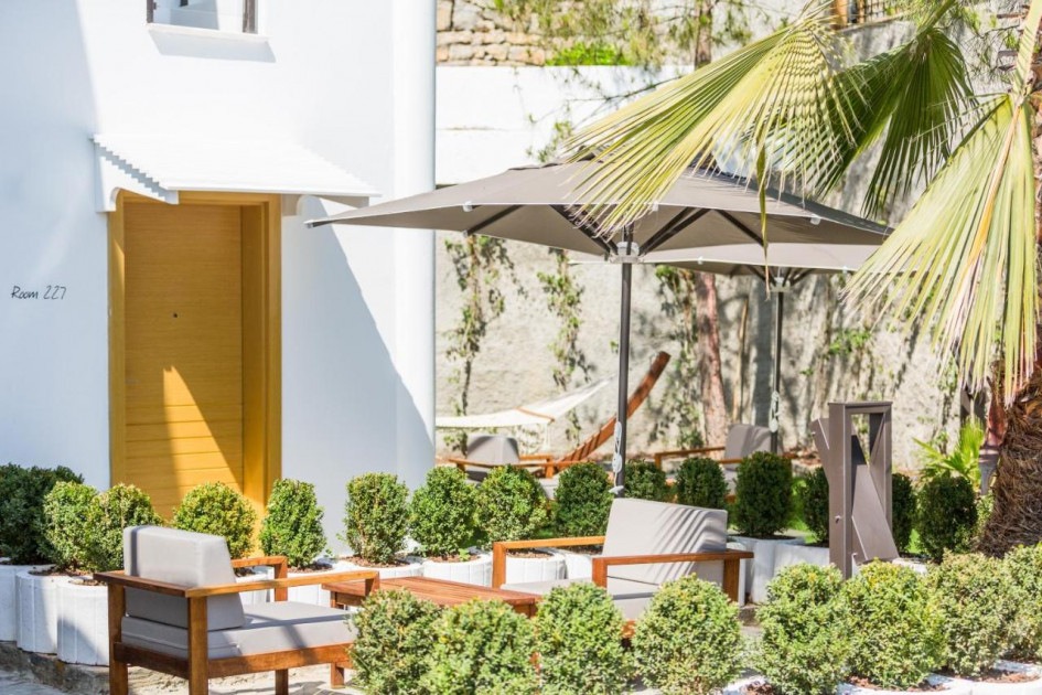 Намира се на 35 км от летище Бодрум, на 2 км от центъра на Бодрум, на 150 м от брега на морето, на обща площ от 7 245 м². Реновиран 2015 г.