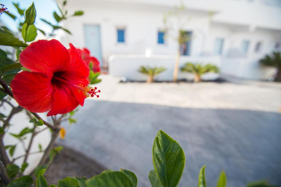 Хотелът се намира в района на Периса-Периволос, само на няколко крачки от най-хубавият пясъчен плаж на острова. Периса е 800 метра, столицата Фира на 10 км, централното пристанище Атиниос е на 7 км.  Автобусна спирка на градски транспорт има на 1 минута от хотела. За всички трансфери и екскурзии, качването на туристи става директно от хотела !